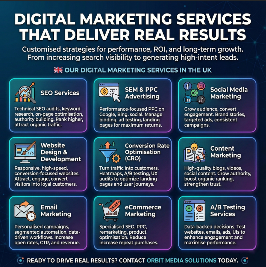 With Orbit Media Solutions, you get a team that understands your goals, optimises every step of your customer journey, and uses proven strategies — no guesswork, no false promises. Just measurable results.